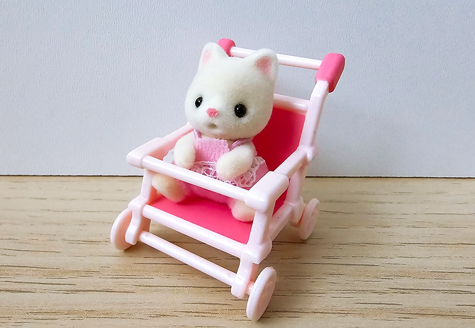 Silk cat with pink stroller.