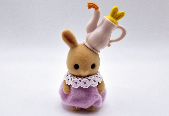 Henry Periwinkle Milk rabbit with a teapot hat.